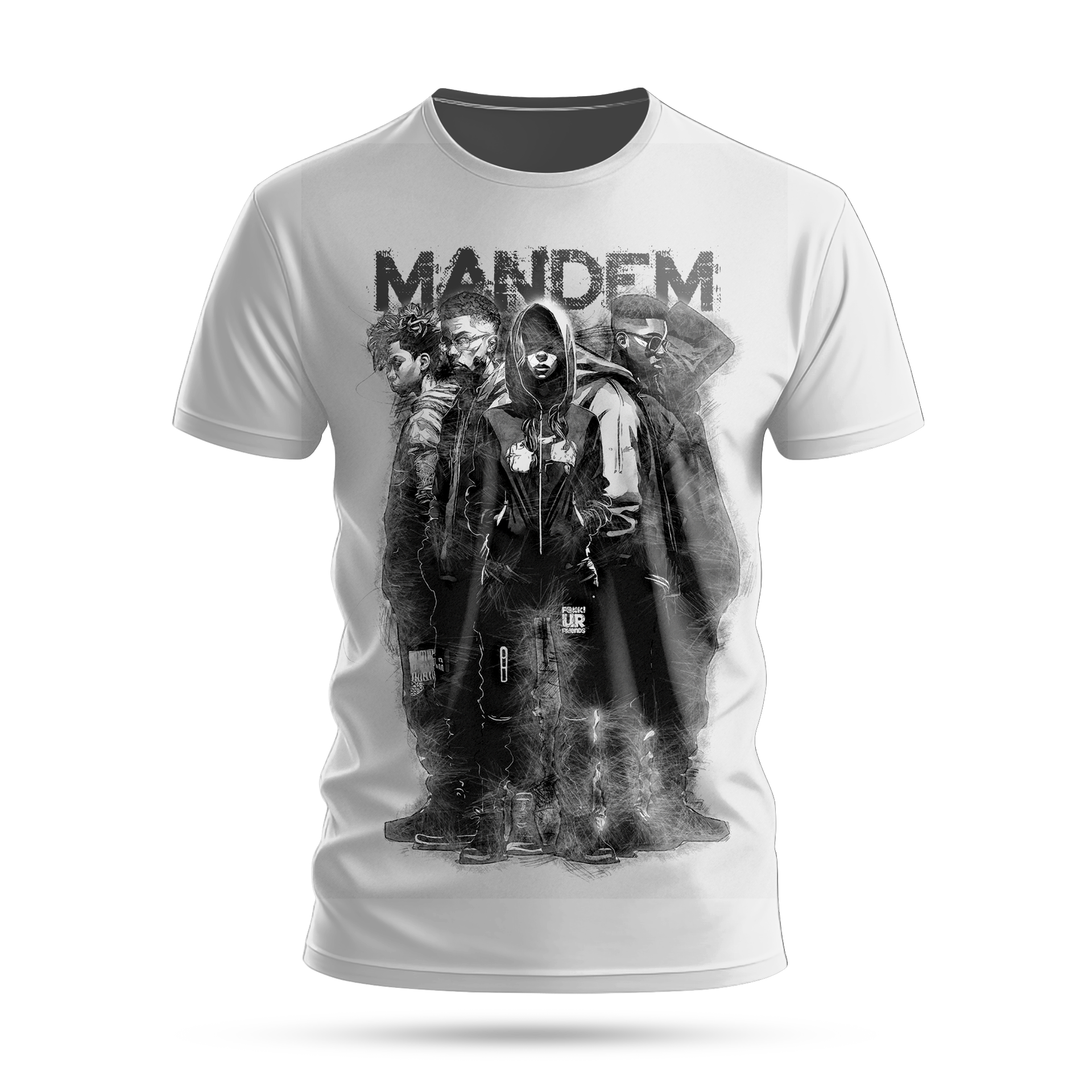 Introducing the ‘Mandem’ chapter 7 t-shirt, featuring a collection of friends bound together by life circumstances and kinship. T-Shit also features limited edition haute crest logo on the reverse nape of the neck. The first illustration of the collection is a guaranteed fan favourite. Both machine washable and unisex in style. Made of 100% preshrunk versatile cotton, it will ensure a comfortable fit whilst being simultaneously breathable. Produced and manufactured in the United Kingdom, you can rest assured of a high quality product and is a great addition to the Fuck ur Friends universe.